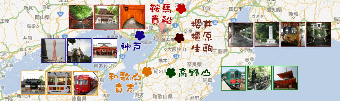 難波→JR和歌山線→和歌山站→◎和歌山電鐵貴志川線-玩具列車→日前宮站→◎日前神宮‧國懸神宮→小玉列車→伊太祁曽站→◎伊太祁曽神社→草莓列車→◎貴志站(小玉博物館)→玩具列車→和歌山站→JR關西空港線→關西機場